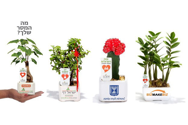 תנו עציץ ממותג מתנה בכנסים או מתנה באירועים עסקיים עם ברכות שונות שגשוג, הצלחה, צמיחה, שפע, אושר ועוד